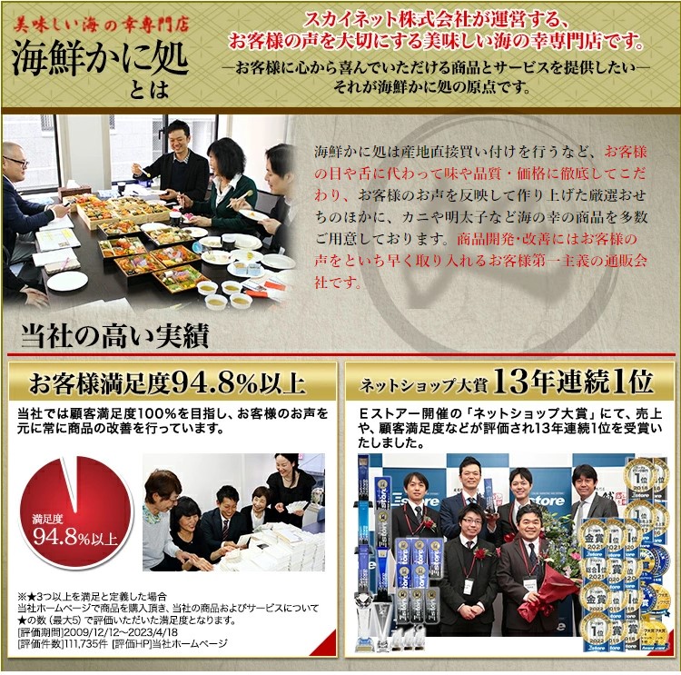 販売元の海鮮かに処が長年愛され続けてるのは お客様の満足を考えて